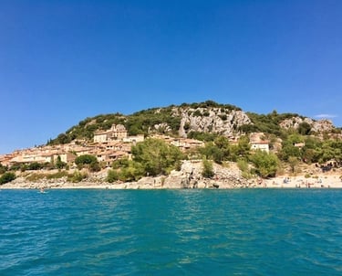 Village looking over the Lac de Sainte Croix and its soft emerald water.
